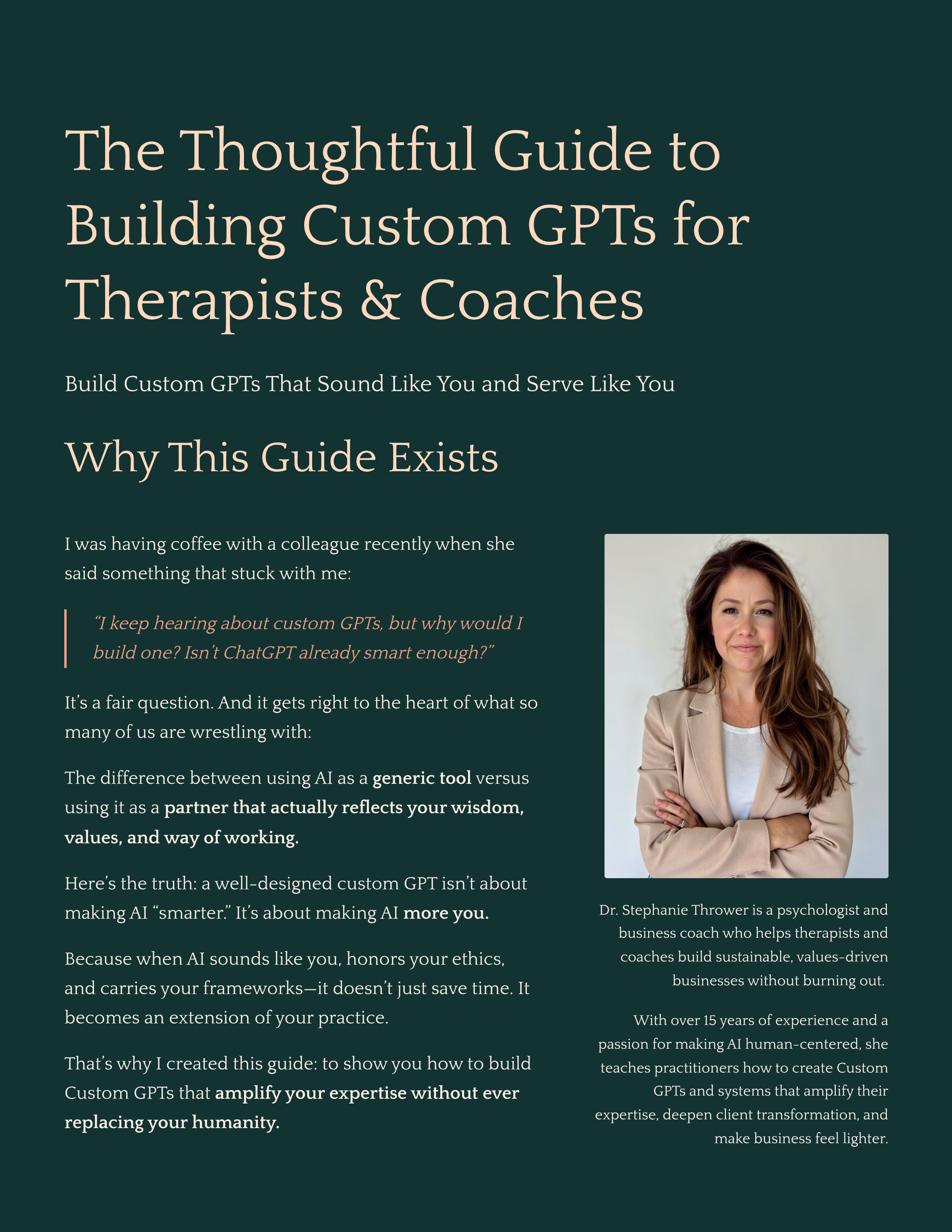 I’m Dr. Stephanie Thrower, a psychologist and business coach who helps therapists and coaches scale income and impact without burning out.